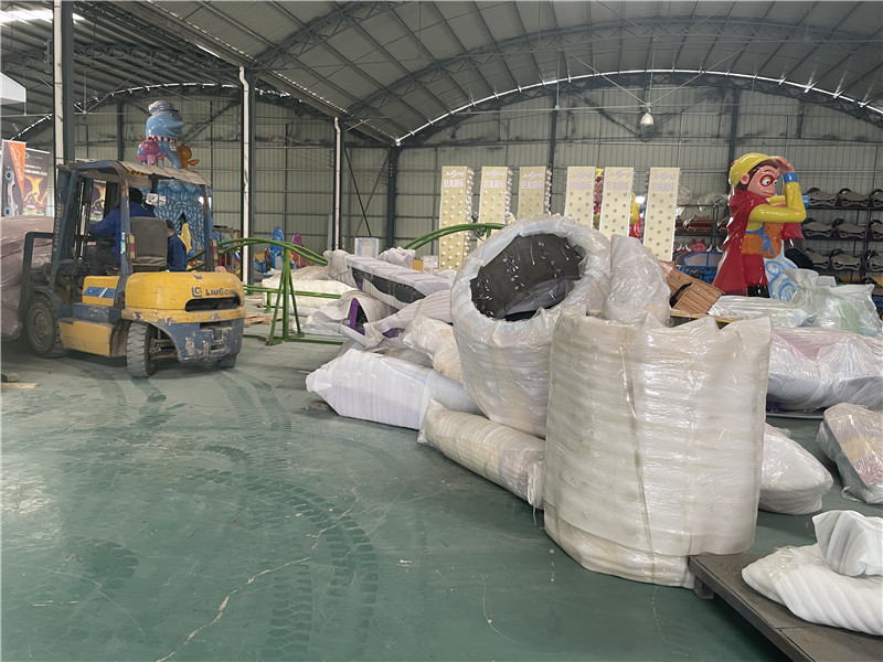 2022年3月8號(hào),天氣晴朗,未來(lái)可期。一大早來(lái)到公司就看見(jiàn)門口停了四五輛大貨車,原來(lái)巨龍游樂(lè)今天要往平頂山郟縣發(fā)貨了,今天發(fā)的設(shè)備比較多,整整有五套呢,怪不得停了那么多輛車,其中包括豪華轉(zhuǎn)馬,逍遙水母,青蟲(chóng)滑車,花果山漂流以及自控飛機(jī),全部都是經(jīng)典項(xiàng)目。下面我們就來(lái)看看我們的裝車現(xiàn)場(chǎng)吧: