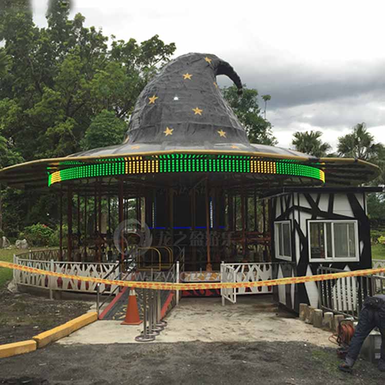旋轉(zhuǎn)木馬是游樂場里常見的一款兒童游樂設備,伸手大人與小孩的喜愛。由于技術的發(fā)展,傳統(tǒng)的旋轉(zhuǎn)木馬延伸出許多造型新奇的新型轉(zhuǎn)馬,今天就為大家介紹一款由龍之盈生產(chǎn),大陸與臺灣攜手設計的一款新型轉(zhuǎn)馬-飛天魔帽,采用了許多前沿的技術,加入了許多新的玩法,接下來就隨著開啟一段奇妙之旅吧。