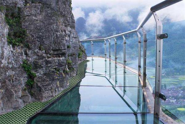 在玻璃上面行走,而玻璃下就是萬丈懸崖,有的景區(qū)的玻璃棧道還會隨腳步制造出玻璃碎裂假象,很刺激有目有?玻璃棧道比較有名的有:天門山玻璃棧道,張家界大峽谷玻璃橋,保定狼牙山玻璃橋,石牛寨玻璃橋,其中石牛寨玻璃橋是目前世界上最高的玻璃橋,高達(dá)180米,全長300米左右。