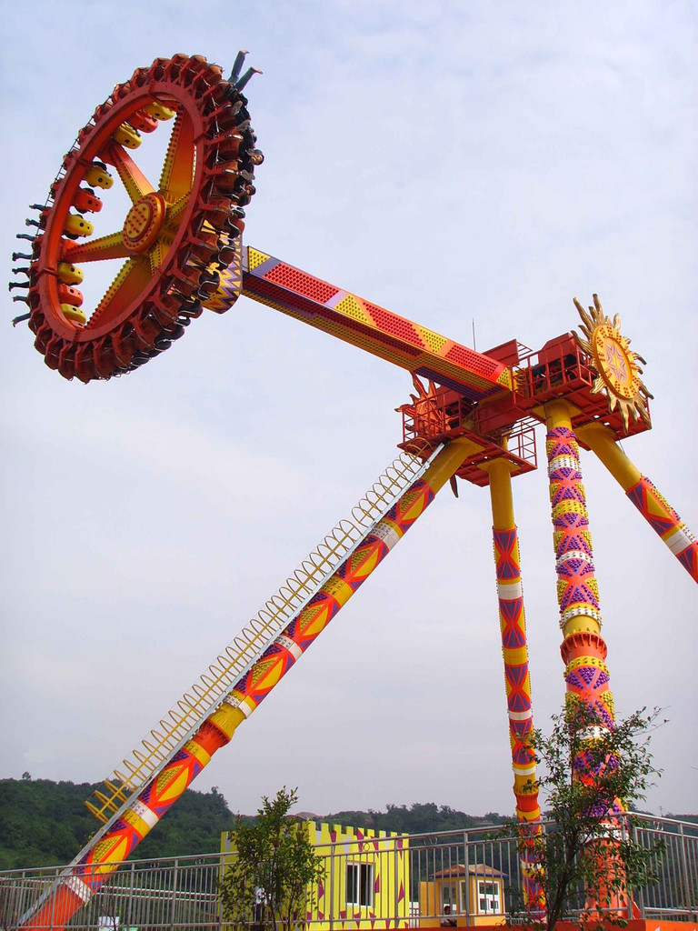 大擺錘:游樂中經典的大擺錘,對于常去游樂園的人并不陌生。他的游樂方式是巨大的鐘擺伴隨著旋轉大幅度的往復搖擺挑戰(zhàn)心理的極限。在極易失去重心的高空中乘客門隨著擺錘搖擺的弧度,游客往往情不自禁的發(fā)出驚呼與歡笑,極大的提高了整個游樂場的歡樂氣氛,使許多游客留連忘返,不愿離開。