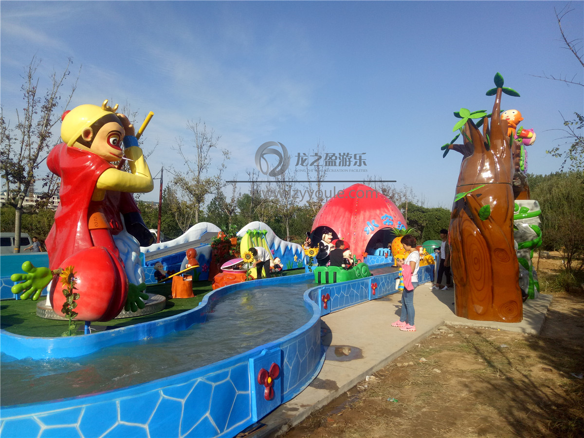作為許昌龍之盈游樂(lè)設(shè)備有限公司的專利新品兒童游樂(lè)設(shè)施,花果山漂流一經(jīng)投入就受到孩子們的熱情追捧。孫悟空一直都是孩子們模仿崇拜的王者,孫悟空以經(jīng)典的腳踏筋斗云姿勢(shì)佇立游樂(lè)設(shè)施中央以及各種有關(guān)花果山的卡通造型,和它與眾不同新穎的玩法使之成為游樂(lè)園中的吸金利器。