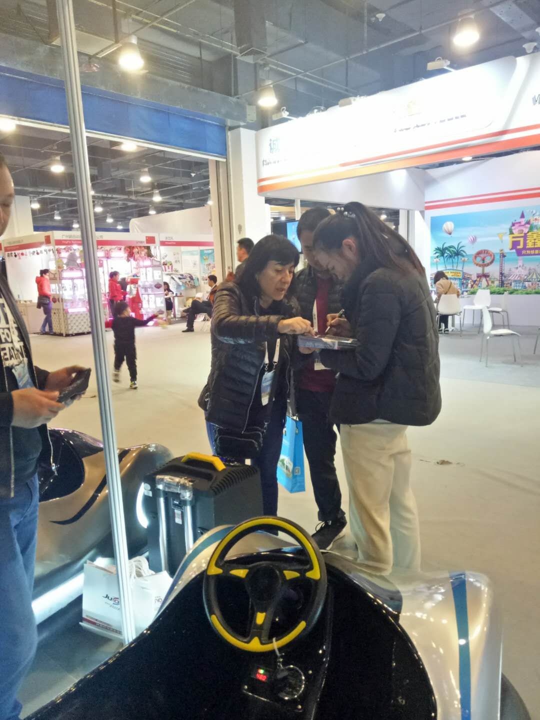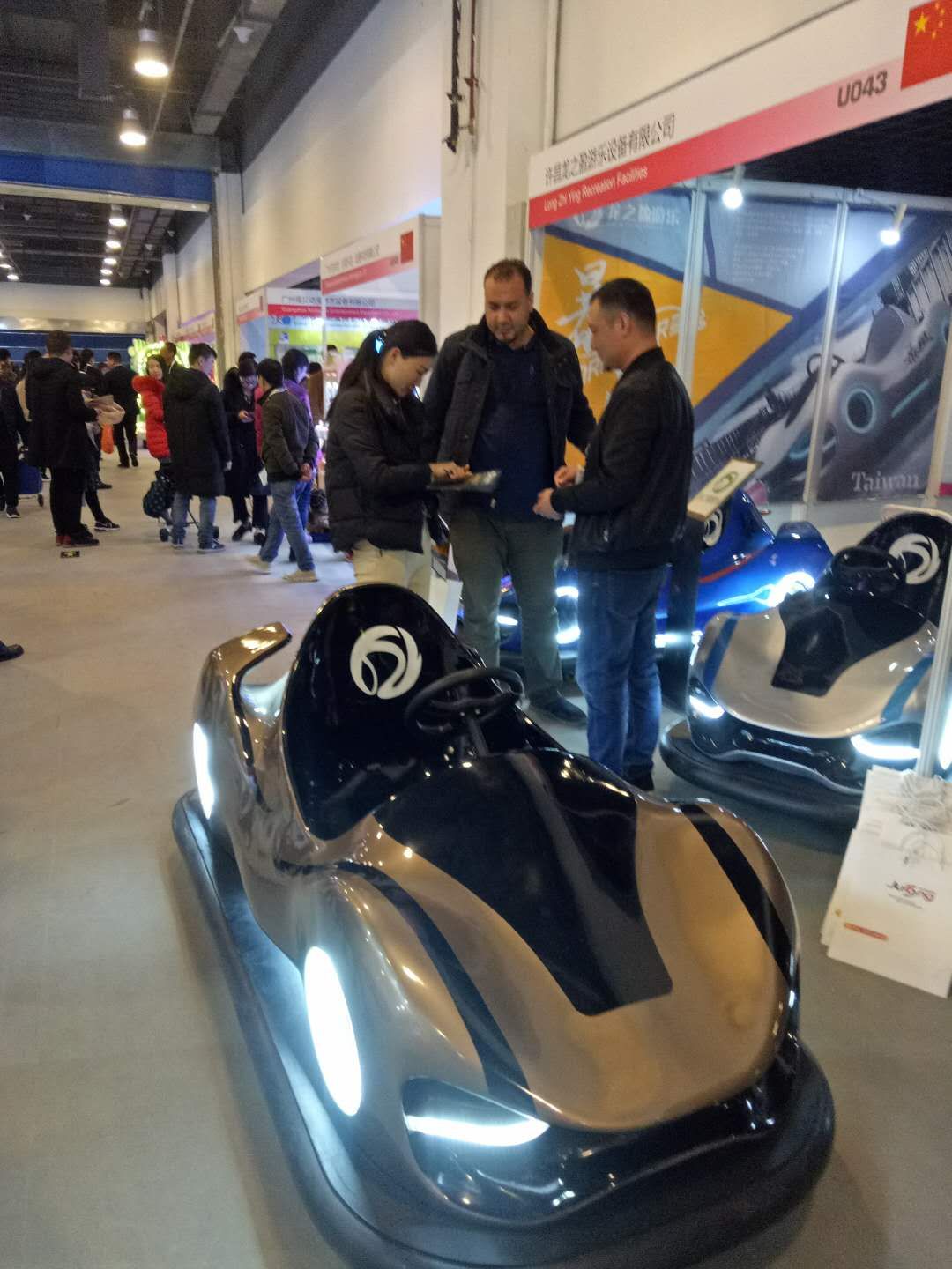 在*一天的展會(huì)結(jié)束后,我對(duì)龍之盈游樂設(shè)備有限公司的經(jīng)理進(jìn)行了訪問。經(jīng)理對(duì)我簡(jiǎn)單的介紹了一下這款產(chǎn)品。這款碰碰車叫“暴風(fēng)漂移”,是他們公司自主研發(fā)的一款產(chǎn)品,是碰碰車和漂移車的結(jié)合體。在經(jīng)理的言談舉止之間看得出來對(duì)他們這款產(chǎn)品的自豪與驕傲。龍之盈的經(jīng)理還告訴我,今天他們已經(jīng)收了好幾個(gè)訂單,有一部分人還說明天再來下訂單,可見這次盛會(huì)帶給他們的收益不小。