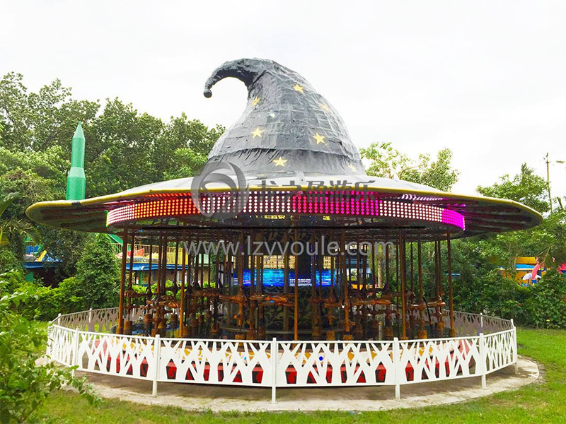 飛天魔帽旋轉木馬是由許昌龍之盈游樂設備有限公司制作,世界*一跳脫傳統(tǒng)設計,結合全新科技所設計的身臨其境5D呈現(xiàn)的產(chǎn)品,該產(chǎn)品結合著名電影《哈利•波特》元素,設備整體是一個巨型的巫師帽,搭配中央顯示屏,結合精心華麗的天幕與地景,以及奇幻的煙霧、泡泡等特效,提供白天到黑夜的神奇魔法飛行體驗。伴隨著動人的音樂,飛天魔帽緩緩起動旋轉起來,人們坐在哈利波特的魔法掃把上開始自由飛翔,從白天一直飛到黑夜,人們通過3D地景技術飛過的森林,飛過了山川河流,又飛過了大海,飛遍了世界每一個角落,轉動過程中煙霧與泡泡不斷的情景創(chuàng)造,都能夠成功吸引他們消費目光。