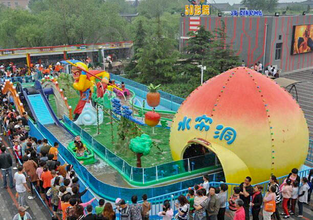 花果山漂流,有著悟空巨型造型和各類造型逼真的大桃和各種互動的卡通造型,是公園當(dāng)之無愧的主打兒童游樂備。花果山漂流游樂設(shè)備為了照顧不同客戶群體的需求特開發(fā)了滑坡和平行的兩種不同的型號,中間的水簾洞和小拱橋組成的滑坡增加了花果山漂流設(shè)備的趣味性。炫彩的顏色搭配,國標(biāo)的鋼材配置,九層厚的玻璃鋼鑄就了許昌龍之盈游樂設(shè)備有限公司的“金剛”品質(zhì),花果山漂流具有極其吸引眼球的西游記造型和小朋友所喜愛的各種動物、植物。現(xiàn)在的花果山漂流從最早的圓形艙已經(jīng)改為方形艙,互動性更強(qiáng)。